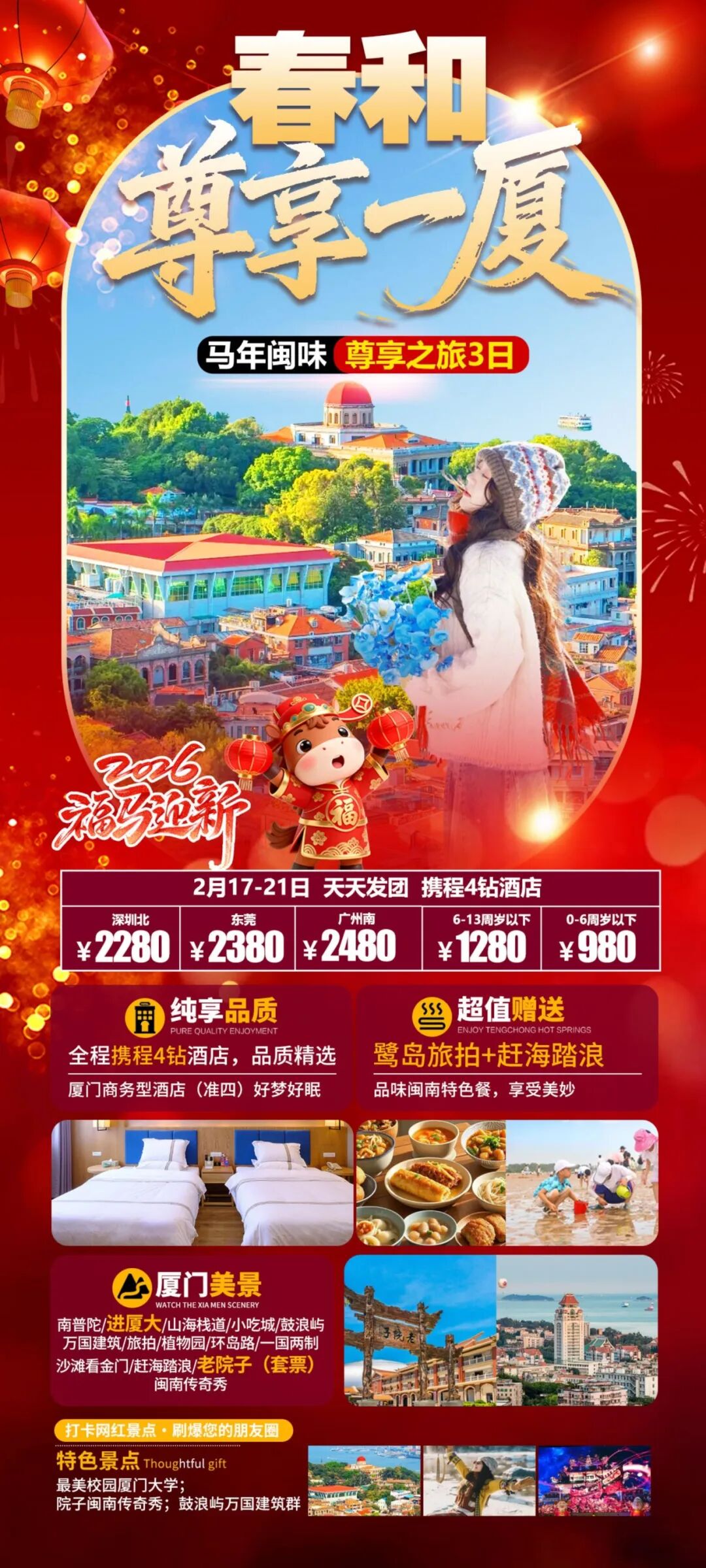3、交通:深圳北/广州南/东莞-厦门 往返动车二等座(以实际出票为准)