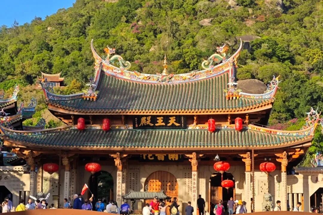 1:【南普陀寺】南普陀寺位于福建省厦门市东南五老峰下,毗邻厦门大学,面临碧澄海港,是闽南佛教胜地之一。清朝康熙年间得到重建,并因其供奉观世音菩萨,与浙江普陀山观音道场类似,又在普陀山以南而得名“南普陀寺”