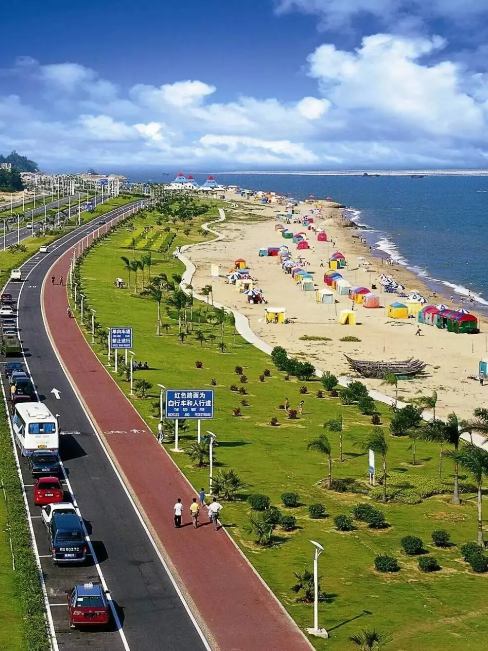 【厦门环岛路】是环绕福建省厦门市厦门岛的城市干道,它跨越了思明区和湖里区两个行政区,全长约43公里。这条路不仅是重要的交通通道,更是厦门的一张名片,以其美丽的海滨风光和丰富的文化内涵吸引了无数游客在这里,你可以欣赏到蓝天、大海、沙滩、绿地和四季花开的美景,感受大自然的宁静与和谐。“一国两制”沙滩位于厦门黄厝海边环岛路的中段,面对着金门岛的位置,具有得天独厚的地理位置。该沙滩以“一国两制,统一中国”的巨幅标语为显著特色可以清晰地看到对岸的金门岛,包括大金门岛和小金门岛等岛屿。天气晴朗时,对岸的标语“三民主义,统一中国”也隐约可见。赶海踏浪,可以与大海亲密接触赶海是海边渔民的一种劳作方式,也是游客体验海洋生活的重要方式。各种海鲜就被留在了这片神秘的大海腹地。在沙滩上上寻找海螺、蛤蜊、小螃蟹等海产品。赶海不仅考验着游客的观察力和耐心,还能让他们感受到大海的慷慨馈赠。