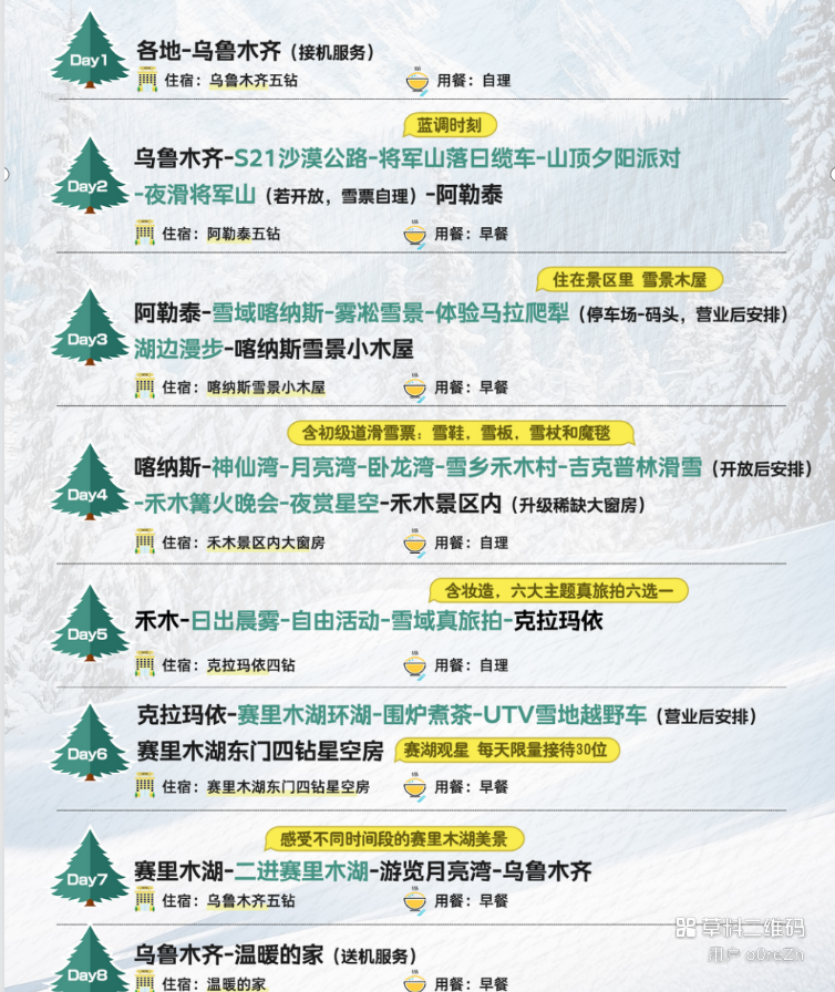 4. 因为新疆行程天气多变,不建议预定散团当天返程的机票/火车票;