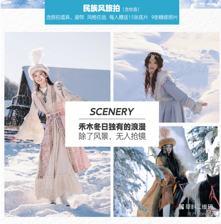 体验项目:旅拍50/人.赛湖小火锅 70/人 将军山缆车50/人(包含项目,如因天气原因无法参与按此退费)