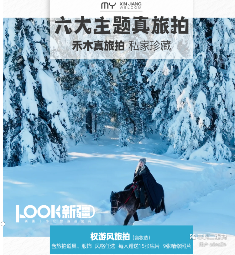 景点门票:冬季喀纳斯+禾木实行套票(去其中一个就是收的全额门票,另外一个不去也无法退费),赛里木湖门票及自驾,吉克普林滑雪场初级雪票。
