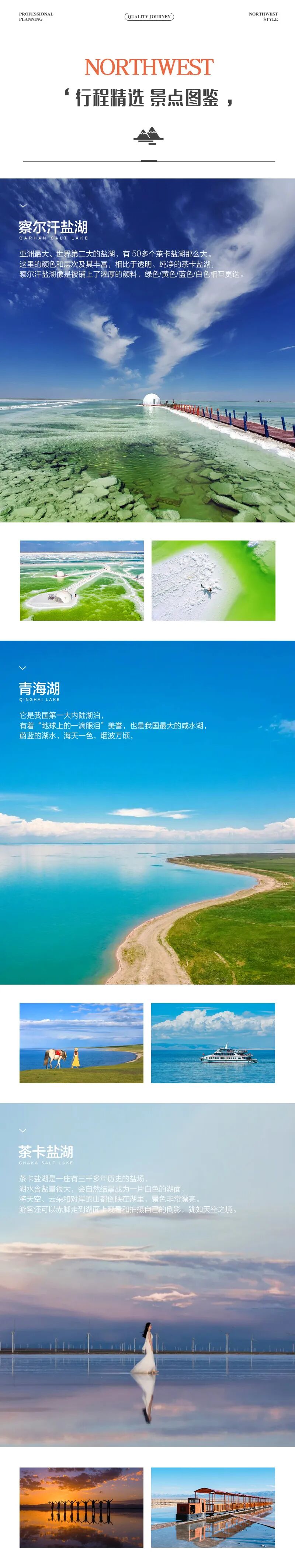 6、门票:所含景点第一大门票。所有赠送参观项目不去不退,客人自愿放弃费用不退!(必消小交通):张掖七彩丹霞区间车 38元/人,察尔汗盐湖区间车 60 元/人,茶卡盐湖单程小火车 60 元/人。自愿选择:翡翠湖区间车 60元/人(建议消费)。