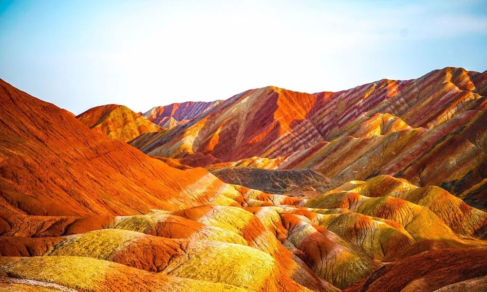 早餐后,前往【张掖丹霞地质公园】(游览时间约2小时,电瓶车38元/人自理),这里是中国丹霞地貌发育最大最好、地貌造型最丰富的地区之一。神奇的丹霞地貌群造型奇特,五颜六色,色调有顺山势起伏的波浪状,也有从山顶斜插山根的,尤如斜铺的彩条布,在太阳的照耀下,色彩异常艳丽,让人惊叹不已。