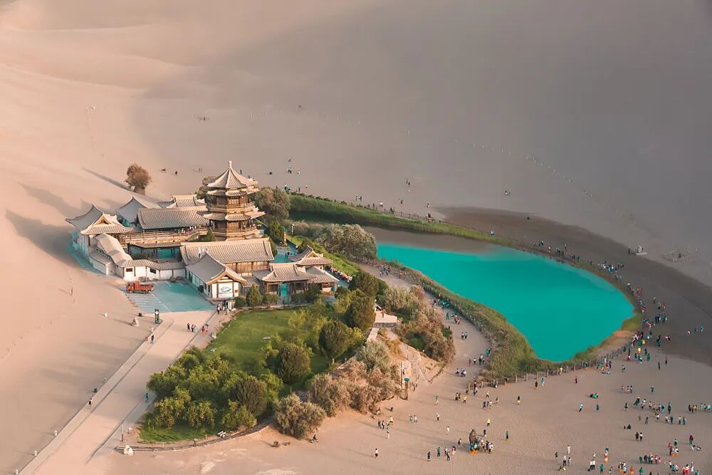 早餐后,前往【鸣沙山月牙泉】(游览时间约2小时),参观 “山泉共处,沙水共生”的奇妙景观,可欣赏鸣沙山日出。在这里,您可以和沙漠亲密接触,攀登鸣沙山,也可以欣赏到环抱在鸣沙山中的月牙泉,观赏月牙泉千百年来不被流沙淹没,不因干旱而枯竭的奇特景象。游览结束后使用午餐。