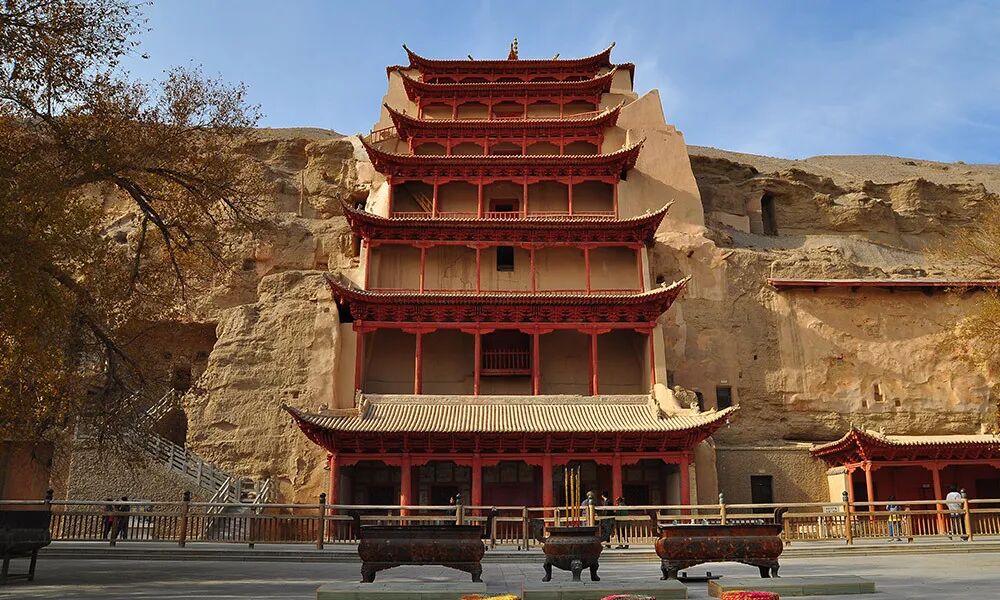 【莫高窟】(含B类票-含4个洞窟,游览约2小时。若B类票未发售,只能预约A类票-含8个洞窟+2场数字电影,游客需补138元/人的差价)。莫高窟俗称千佛洞,是20世纪最有价值的文化发现之一,坐落在河西走廊西端的敦煌,以精美的壁画和塑像闻名于世。参观结束后返回敦煌市区入住酒店。