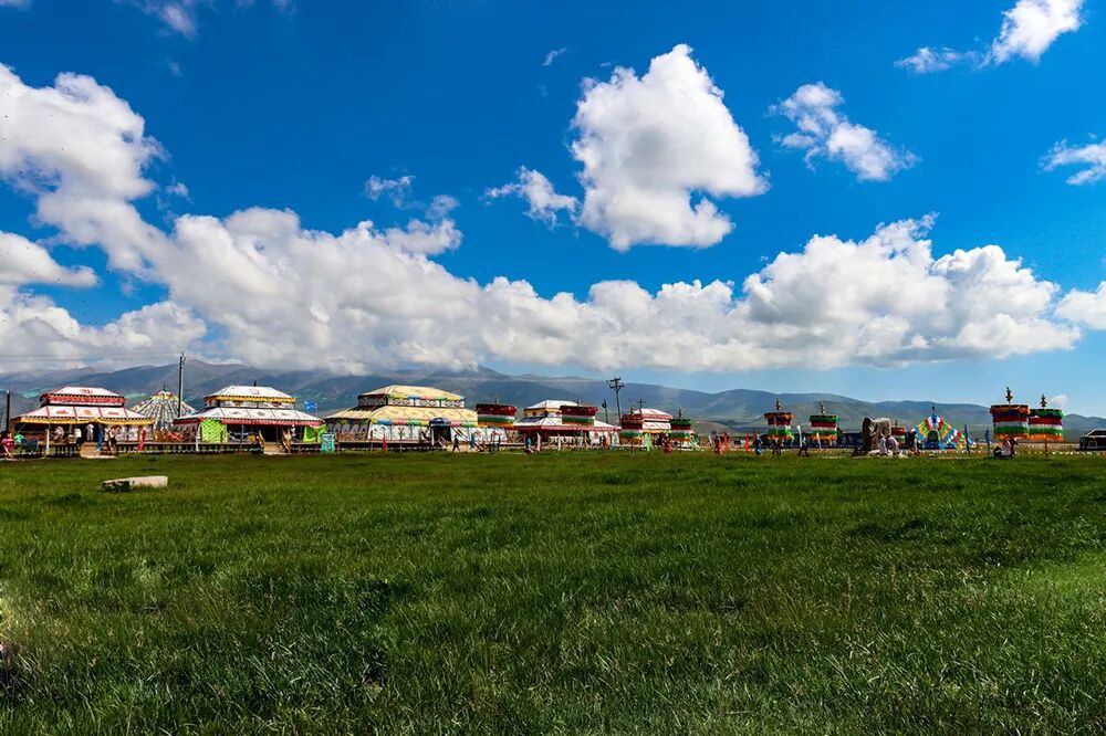 【金银滩草原-文迦牧场】(适合游玩时间一般是5-9月,其余时间不开放则替换其他景点)(行程说明:如文迦牧场不开放,更改为【河口古镇】)。金银滩草原位于青海海北藏族自治州海晏县西海镇西北侧,分为金滩和银滩,平均海拔3200米。得名金银滩草原主要是由于草原上河水两边一边开着白色小花,一边是金色花朵,十分漂亮。西部歌王王洛宾来此采风时创作了歌曲《在那遥远的地方》,金银滩草原也由此名扬天下。