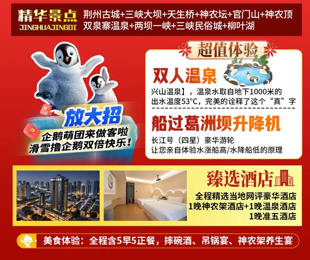 全程准四酒店+1晚准五神农架景区
