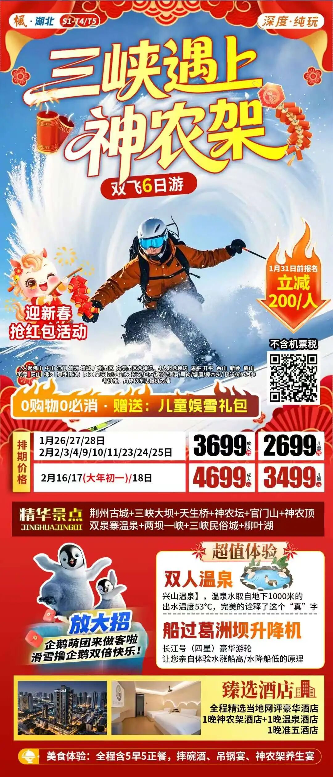 春节神农架国际滑雪场380元/人(含雪板、雪板、雪鞋)价格仅供参考以实际为准!
