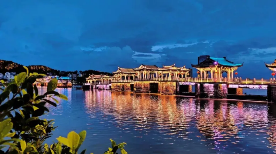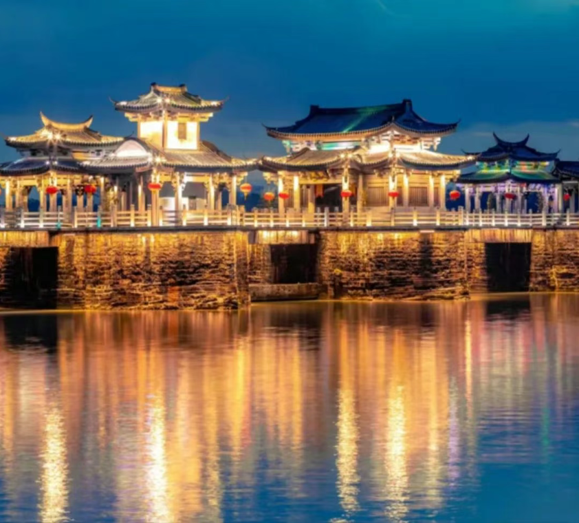 ▲结束后乘车前往广济桥,夜间欣赏【一江两岸灯光盛宴】和【广济桥“光影秀”】(每晚 20:00一场,周末和节假日 20:00 和 21:30 各一场,每场约 10 分钟(如因检修需要暂停夜景亮灯或因不可抗力原因导致无法参观 ,不作赔偿) ,结束后 ,乘坐环保车前往停车场 ,乘车前往入住酒店。