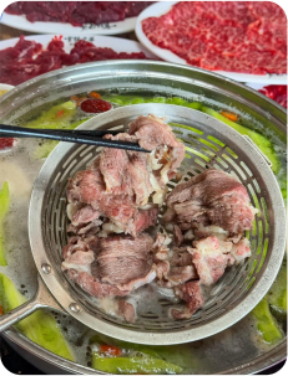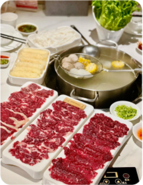▲前往餐厅品尝【正宗潮汕牛肉自助火锅】牛肉任吃 潮汕牛肉火锅成名于上世纪 40 年代 ,传统做法是将沙茶酱加入锅中, 用浓汤做锅底 ,后来逐渐化繁为简 ,涮牛肉的锅底只剩下牛骨清汤和白萝 卜 ,更有利于尝出牛肉本来的味道 ,潮汕美食最讲究 9大 味至淡9 ,牛肉都是现宰现卖 ,把“鲜”字发挥到极致。