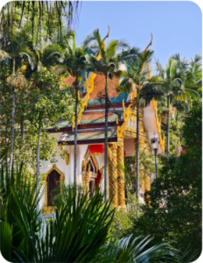 ▲ 参观【泰佛殿 ,游玩约 30 分钟】也称开元镇国禅寺 ,位於广东省韩江大桥东侧笔架山南麓,风光秀丽、松柏掩映,与新建的慧如公园相对应。东侧有四面佛,在泰国 ,四面佛是神,不是佛 ,是古婆罗门教三大神之一的婆罗贺摩 ,意为 9大梵天” ,泰国华人习惯称“ 四面佛”。