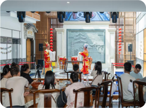 ▲ 参观【潮州老茶馆 ,游玩约 30 分钟】——潮汕看大戏“非质文化遗产” ,茶馆的特色是可以边喝茶边欣赏潮剧表演,此外还有歌唱表演等。表演结束后,观众还可以与演员合影留念。来潮州旅游可以到这里体验一下 ,一边品茶一边欣赏传统艺术表演 ,享受潮汕慢节奏生活。