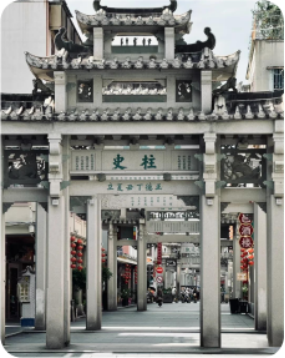 ▲ 前往游览【太平路牌坊古街】牌坊街是位于潮州古城中心的集非物质文化遗产、传统工艺、特色小吃等为一体的文化古街。 牌坊街特色建筑是中西合璧的骑楼 ,矗立的 22 座中式明清石牌坊与两侧南洋风味的骑楼互为映衬,明末清初引入具有南洋建筑风格的骑楼建筑,形成中西合璧的独特侨乡风貌 ,骑楼建筑记录着潮州人下南洋的历史往事。