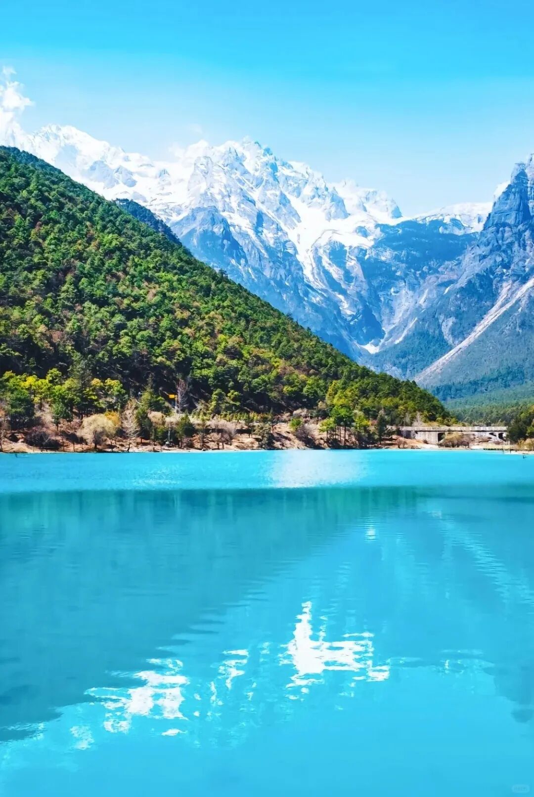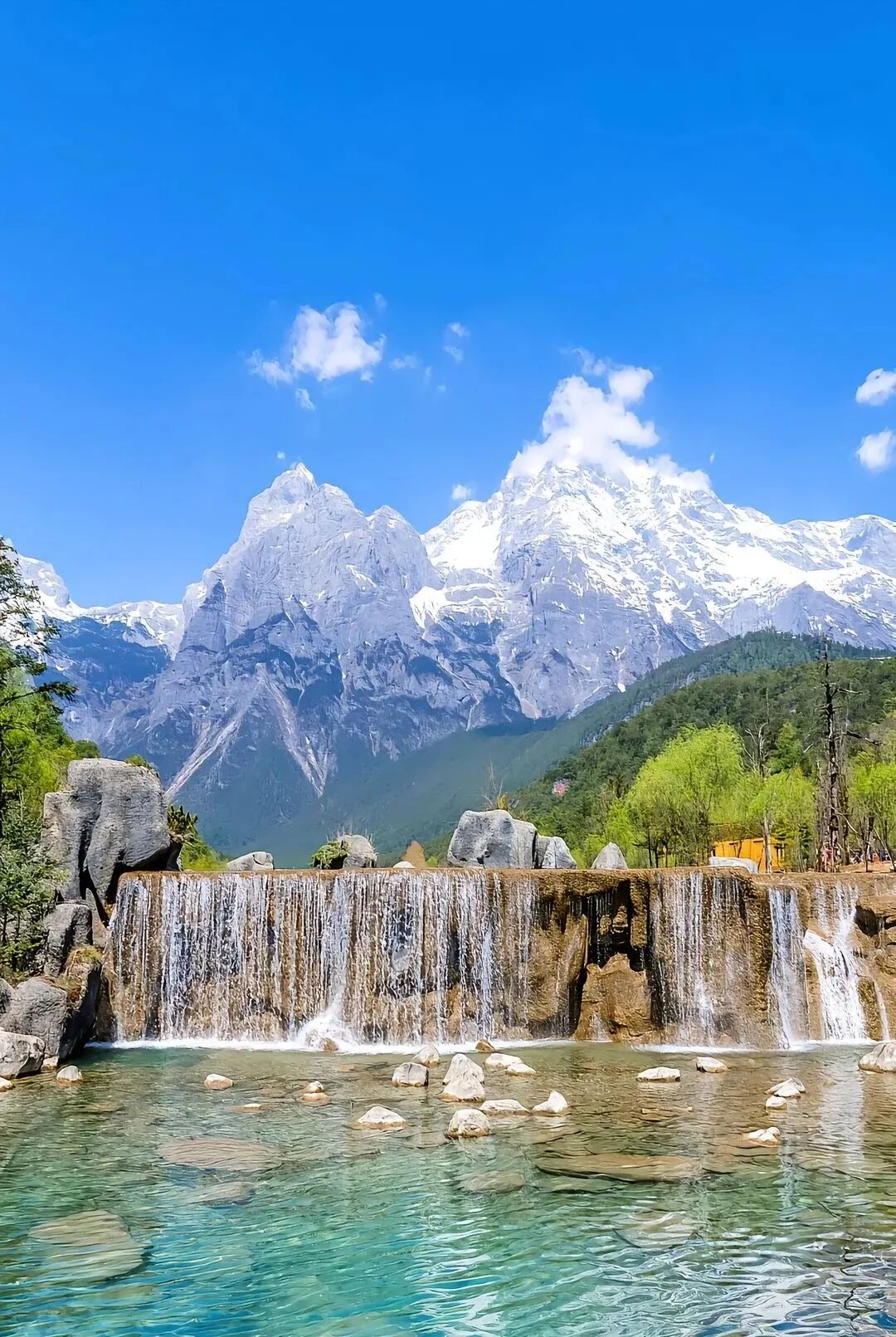 午餐之后前往 “仙人遗田”之称的小九寨沟【蓝月谷】(不含蓝月谷电瓶车费用,可自由选择),其前身为人们所熟知的 “白水河”,蓝月谷又名白水河,在晴天时,水的颜色是蓝色的,而且山谷呈月牙形,远看就象一轮蓝色的月亮镶嵌在玉龙雪山脚下,所以名叫蓝月谷,