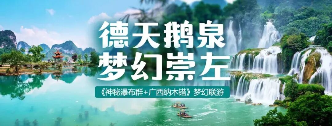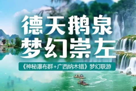 “中国最美瀑布”德天跨国大瀑布、“西南三大名泉”鹅泉、“花千骨拍摄地”崇左峒那屿湾、明仕田园风光、锦绣古镇、“广西纳木错”凌云浩坤湖、梦幻风雨廊桥、纯净豪华.动车3天 (真纯玩0加点0购物0景店0套路)