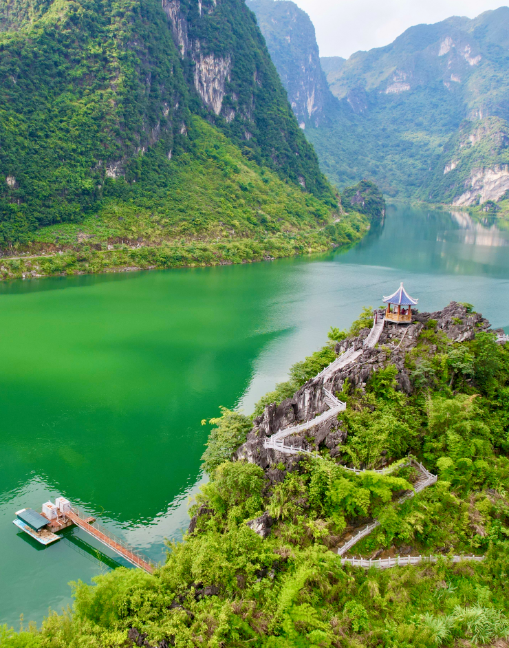 早餐后游览广西秘境【浩坤湖】(游览约2小时,自费套票含景区接驳车+游船费用),位于凌云县伶站乡,古称“东湖”,湖面宽阔,水质清澈,四周山峦起伏,连绵不断,湖中独峰耸立,小岛显露,湖山秀美、岸线曲折,岛渚星罗,几十座山峰紧紧挟携着一湖碧水。湖内岛屿交错,水天一色,两岸山奇崖秀,令人陶醉。湖光山色处处成美景,古代多少文人墨客畅游浩坤湖,留下“浩坤湖水碧连天,倒影青峰花竹烟。一叶扁舟君自去,桃花源里觅陶潜”的千古佳句,明代土司岑云汉在汾洲钓鱼台附近的石壁上雕刻的《游东湖记》,至今流传。浩坤湖一年四季绿莹莹,深不见底,湖中几个小岛像竖起的吊坠一样镶嵌在一颗硕大的绿宝石里。湖边上的山峰层峦叠嶂,气势雄伟地袝托着明如境的湖面,浑然天成,如同走进了梦幻般的仙境。午餐享用【凌云农家宴】(或安排百色红军餐)。后统一集中乘车前往南宁站,乘坐动车返回(二等座或卧代二等,以当天车次为准),结束愉快的旅程!