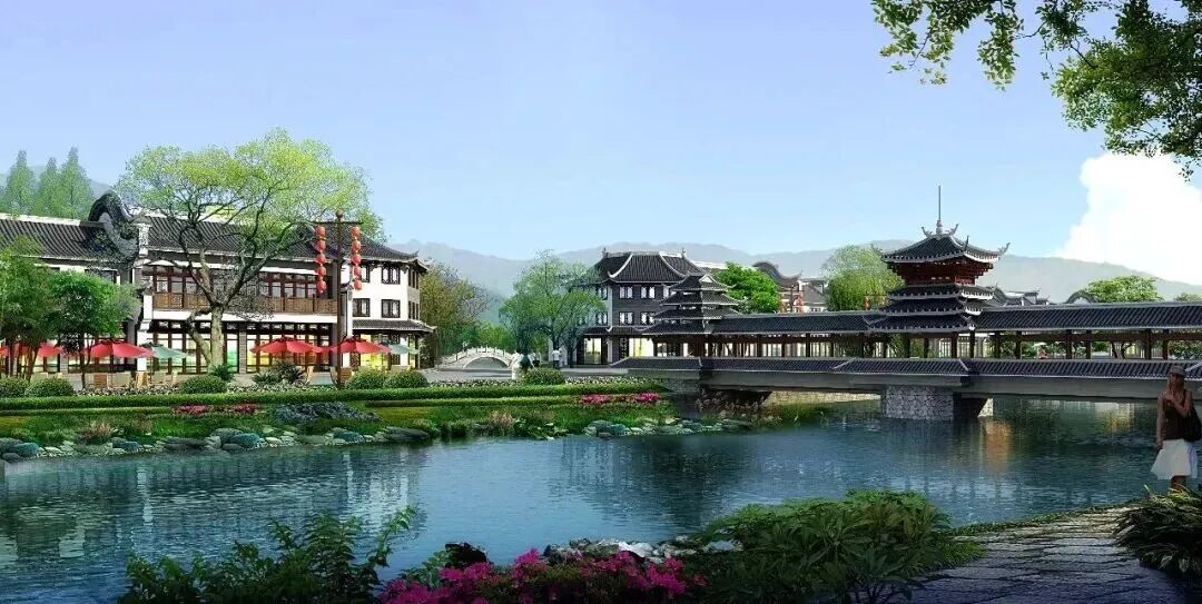这里翠竹绕岸,农舍点缀,独木桥横,