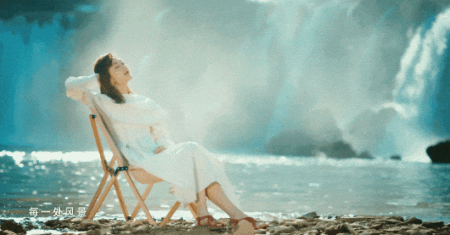 暮色中的瀑布如银帘高挂,似缟绢垂天,引人遐想。