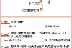 3. 门票:白沙湖和喀拉库勒湖因沿途就可以看到,司机会给大家时间拍照。如需进入景区,请自行购买门票;其他费用包含外如产生费用,敬请自理;
