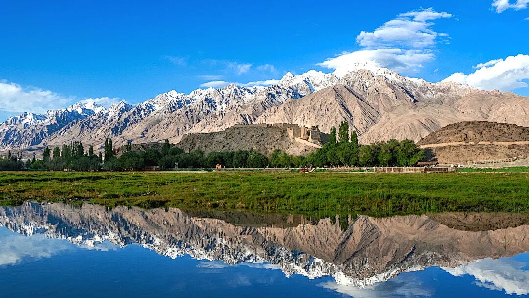 今日早起经塔莎古道前往塔尔乡,途中打卡沉睡在帕米尔高原的“大地之眼”,感受来自喀喇昆仑山脉的压迫感。塔莎古道最早可以追溯到汉代,为连接西域各国,特开通了这条古道。这条隐藏于昆仑山脉腹地的秘境,一路风光无限,群山层峦叠嶂,被誉为世外桃源。后经昆仑大峡谷抵达塔尔乡,青蓝色的塔什库尔干河川流而过,民居依河而建,家家户户种满了杏花树。适时登上幸福五号桥,拍摄这个小村子的烟火气息,后深入到乡间小道,感受淳朴的民族民情。民居,人文,每一处都能成为出片王炸。悠闲的牛羊、劳作的人群、天真烂漫的孩童以及香气扑鼻的杏花林,沉浸式体验塔吉克人的田园生活。游览结束后告别杏花村返回酒店入住。