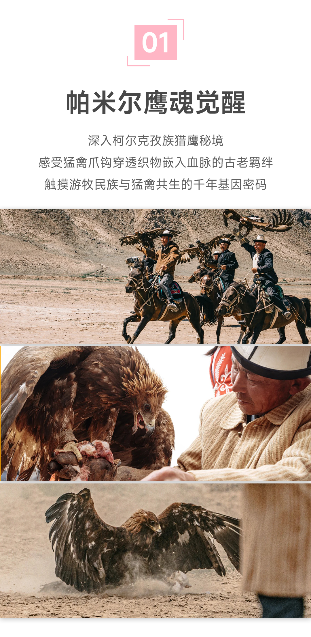 3.集合日赠送机1趟。4.安排特色火锅+下午茶体验。5.赠送非遗表演:阿合奇猎鹰。
