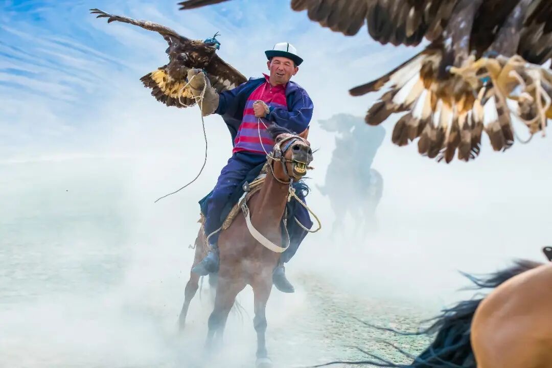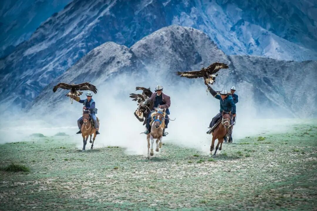 早餐后出发前往阿合奇非遗猎鹰场,如果你渴望一场与众不同的旅行,那就来阿合奇猎鹰之乡吧!解锁超震撼的猎鹰文化之旅...阿合奇县作为“中国猎鹰之乡”,其猎鹰文化村(如苏木塔什乡、柯尔克孜非遗小镇等)是柯尔克孜族传统驯鹰技艺与民俗文化的核心传承地。这里不仅保留着千年驯鹰习俗,更通过文旅融合让古老非遗焕发新生,柯尔克孜族驯鹰习俗是家族式口头传承的绝技,如今,以国家级非遗传承人库尔马西·胡特曼为代表的驯鹰人,仍延续着“不见兔子不撒鹰”的传统——猎人骑马托鹰飞驰至山顶,摘下鹰眼罩后,猎鹰便俯冲捕捉猎物,展现惊人的敏捷与默契。2011年,该习俗被列入第三批国家级非物质文化遗产名录。今天我们可以在这里体验到柯尔克孜族驯鹰习俗讲解、与非遗传承人集体交流合影、观看游牧时追捕场景、诱捕训练展示。