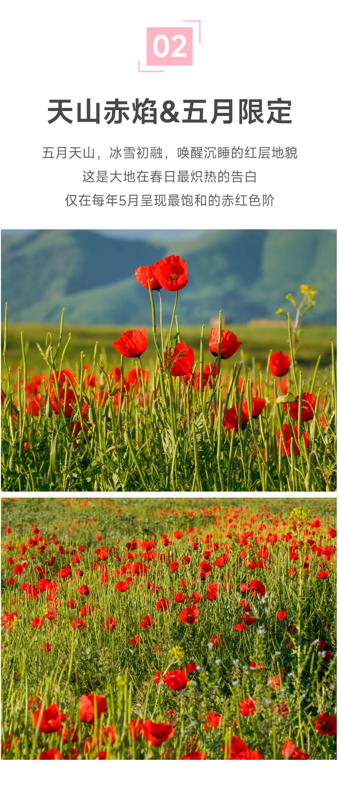 温馨提示:新疆的红花,通常在4月底5 月初开放,由于花期受气温以及天气变化影响较大,每年花期不固定,无法确保最佳花期,不同地方花开时间不同,我们会尽力寻找红花来满足大家的拍摄,敬请谅解!也可能因为天气原因会涉及行程的微调,届时请配合导游工作。
