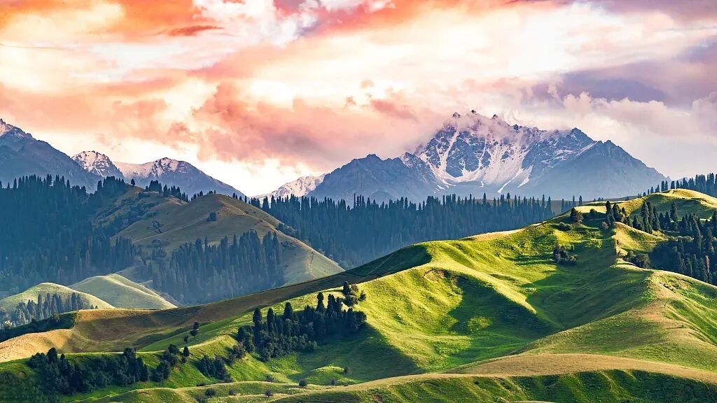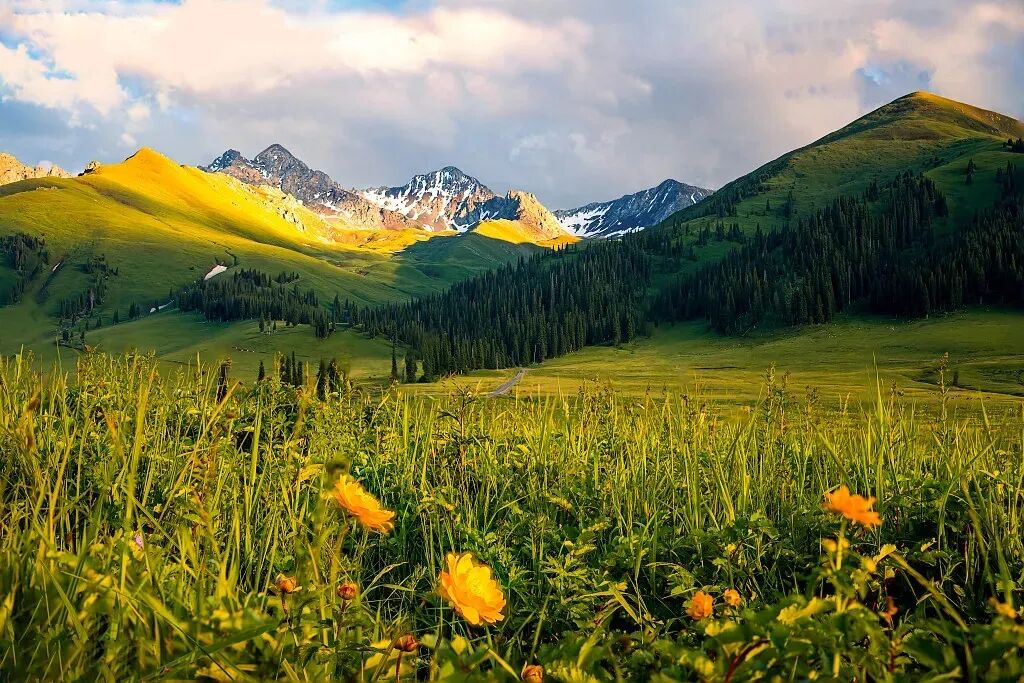 早起后前往萨哈乡,由于交通不便,这里几乎成了一个与世隔绝的地方,仿佛是从诗经里走出来的绝美之地。“萨哈”的汉语意为“在水一方。每逢4月底5月初夏,漫山遍野的野苹果树开着粉的、红的、白的、紫的花,香溢四谷。此时进入林海,身处花海,群蜂嗡嗡,蝴蝶飞舞,其间伴有鸟鸣,真乃修身养性之处,给人以世外桃源之感。今天我们除了拍摄苹果花,还可以探秘六百年果树王,賞黑湖,登望峰台,还可看到哈萨克人跨马扬鞭,一边放着羊群等牲畜,一边驰骋在辽阔的草原。随后前往库尔德宁,库尔德宁虽处雪山脚下却能避免遭受雪山谷风的直接冲击。于是谷中终年温和,冬暖而春早,植物生长期较长,故有“暖谷”之称,春满四月天之时,天山其他地方才吐草芽,而此处却已绿草如茵、鲜花成海了。一到春天,漫山遍野都是鲜花,宛若仙境,由野苹果、野核桃、野生欧洲李、野杏等不同果树组成,这些野果林中,有不少野生果树属于珍稀物种。