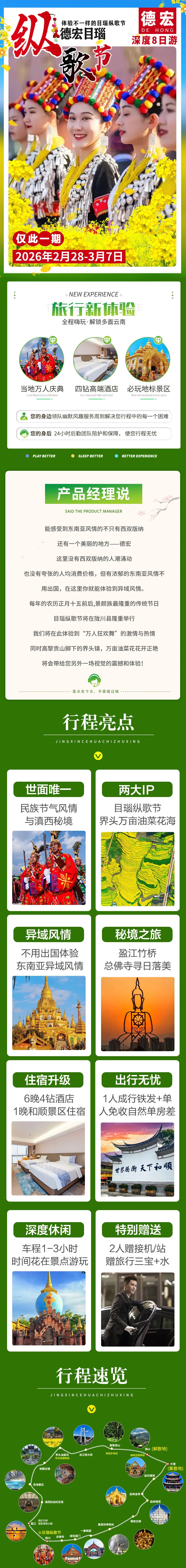 1.【世面唯一】独家策划万人目瑙纵歌节+界头油菜花海+大美盈江+保山咖啡的行程,探索藏在边境深处的秘境云南;民族节气风情与滇西秘境以及界头油菜花海的完美融合!