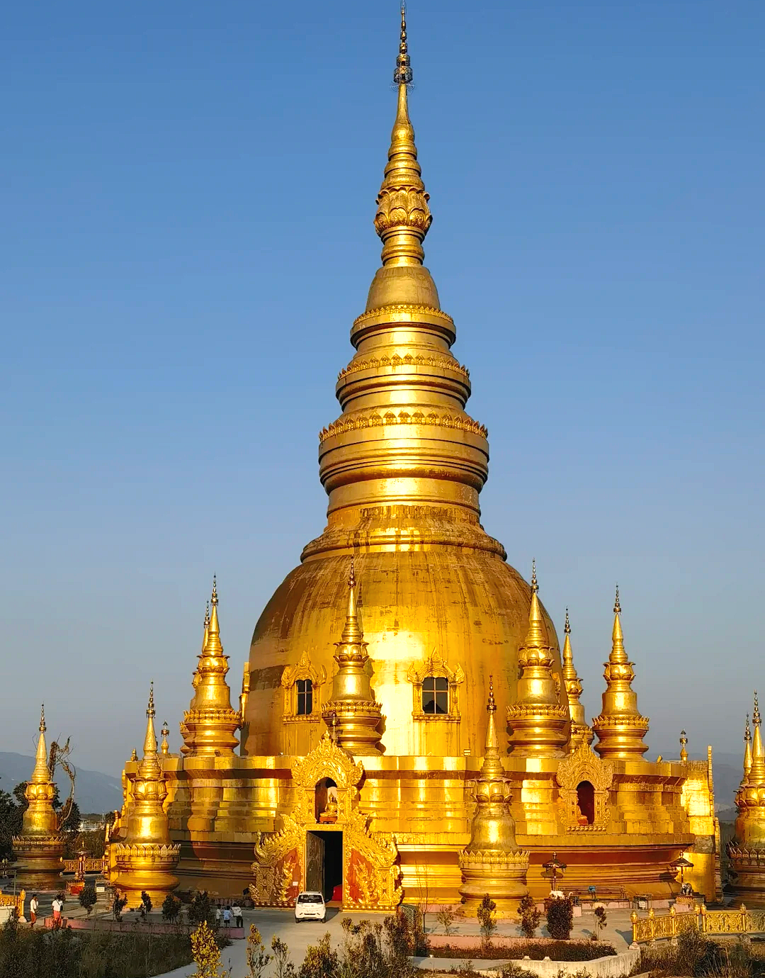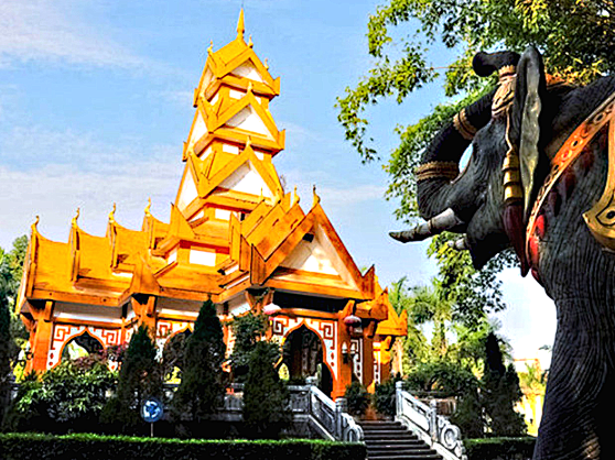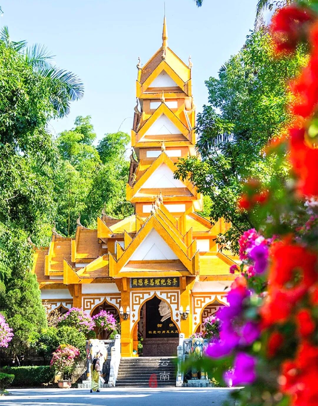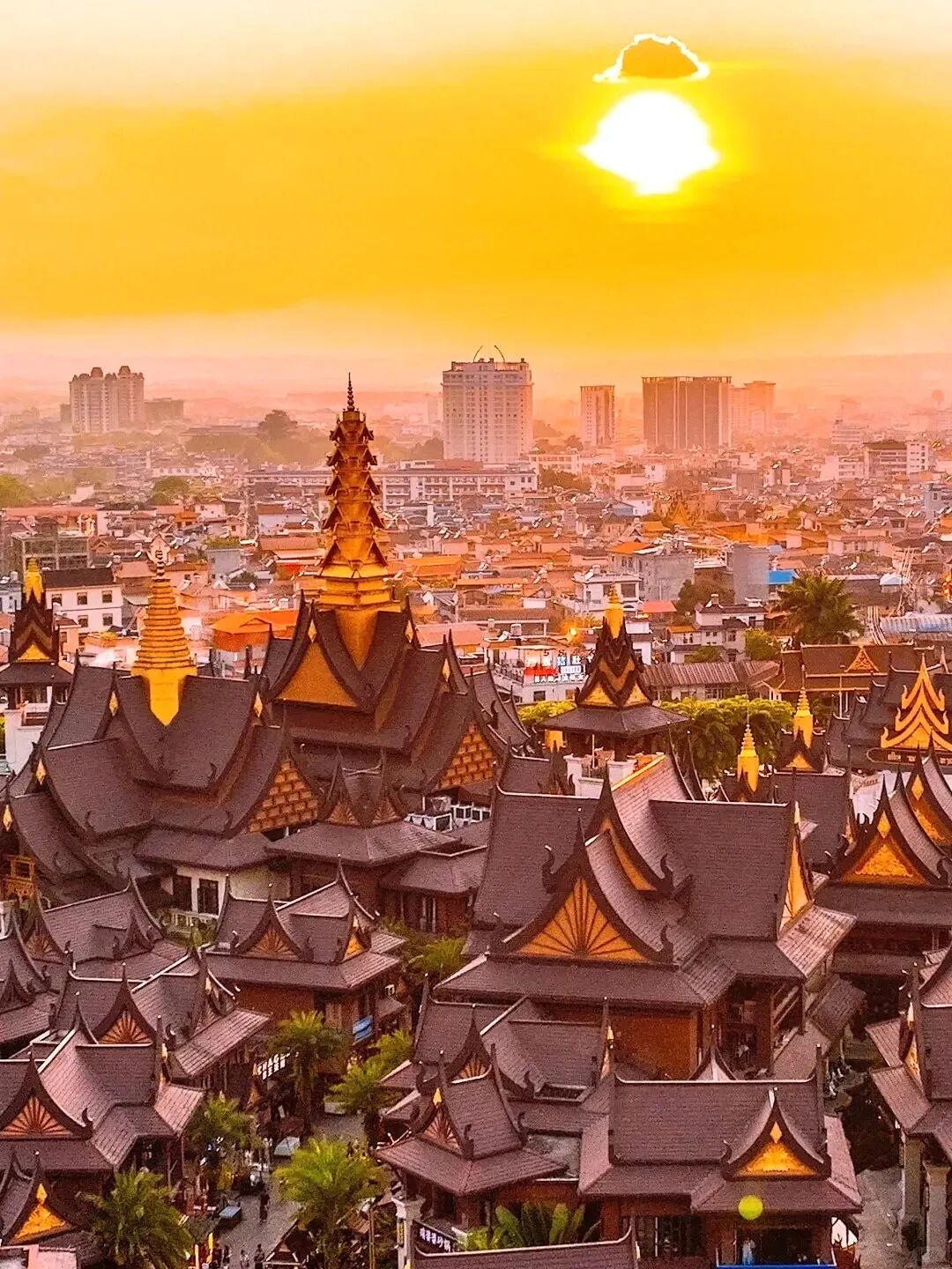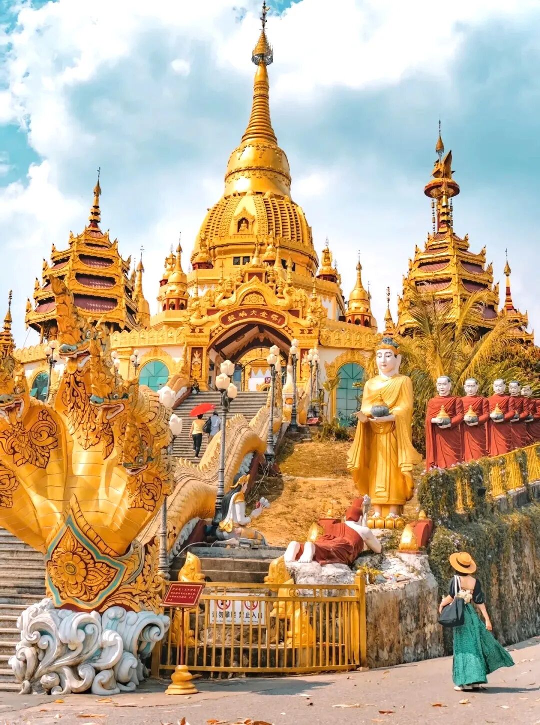 最后前往瑞丽傣王宫【总佛寺】,在瑞丽总佛寺追一场日落,直接解锁“佛揽金乌”的神仙奇观,彩虹阶梯通向维罕大殿,朱红描金的廊柱映着余晖,风吹过廊柱的声响,都像佛前温柔的低语。