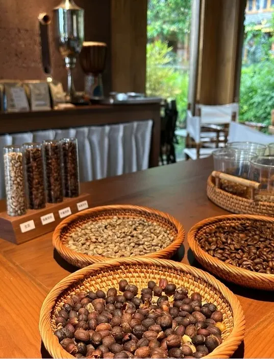我们在庄园了解观摩选豆、烘焙、加工处理等流程和环节,最后亲自学习和品鉴【手冲咖啡】,喝咖啡逛村庄,走到半山腰,可以俯瞰整个村落和远处的怒江,眼前的景象让烦恼在那一刻不复存在。