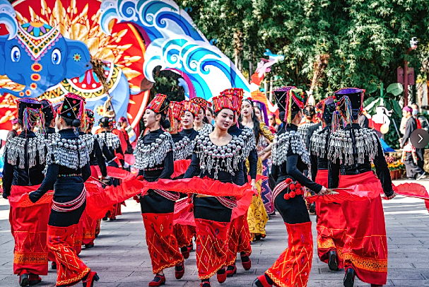 目瑙纵歌因其神奇美丽的传说和震撼的场面,被誉为“天堂之舞”,先后入选国家级非物质文化遗产名录和吉尼斯世界纪录。景颇族和各族同胞以歌舞驱恶扬善、庆贺丰收、庆祝胜利,是景颇族历史、文化、艺术和民族风情的集中展示。