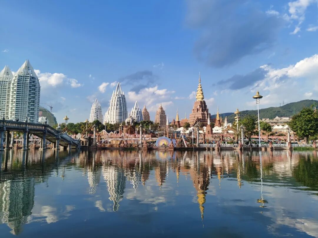 告庄西双景为傣语,汉意为“九塔十二寨”,旨在重现古时景洪盛景,打造一个繁华昌盛的“景洪城中之城”。