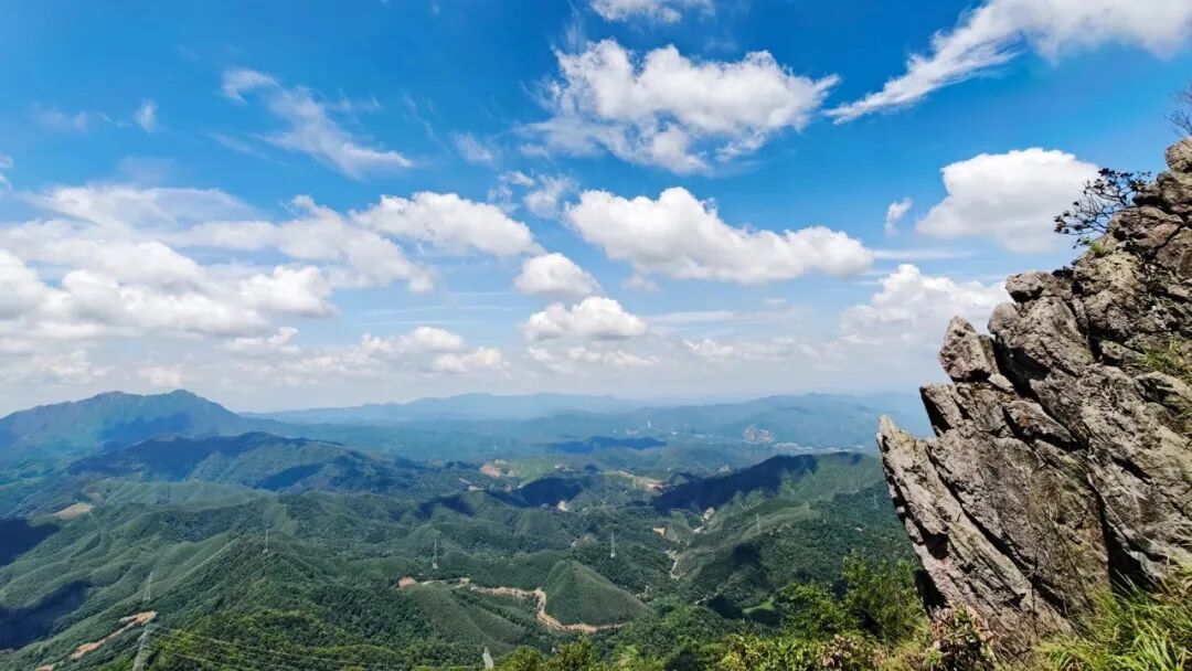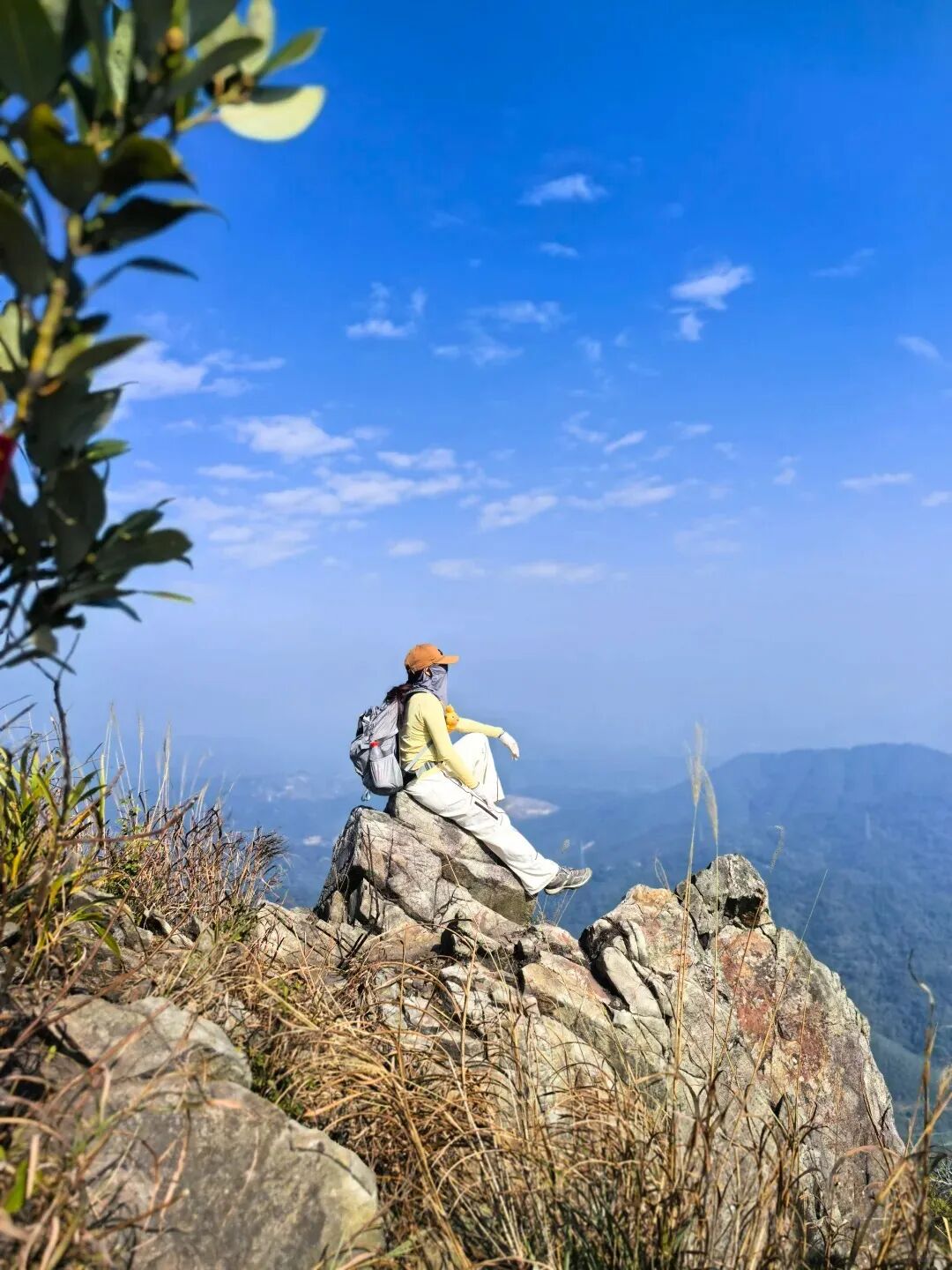 13:30 到达大帽山山顶,休息拍照打卡怪石嶙峋,一览清远城区风光。