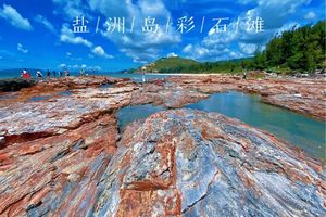 14:00~14:30 到达彩石滩,游玩摄影(自备午餐),对面是一望无际的沙滩和黑色的岩石,尽情的拍照玩水、不怕冷的可下海游泳捡贝壳捉鱼。、
