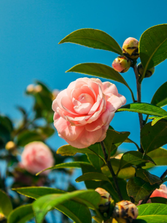 一些还未完全盛开的茶花