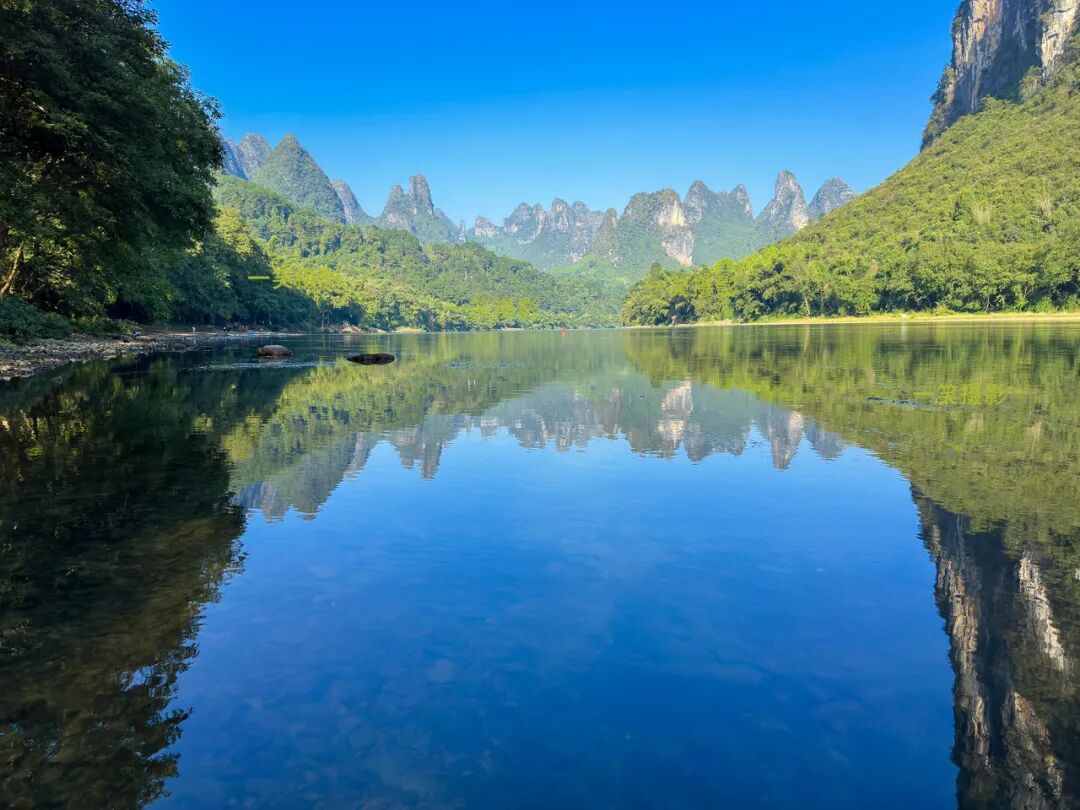 当真是“舟行碧波上,人在画中游”徒个中国漓江100公里徒步从桂林徒步到阳朔将漓江的美尽收眼底